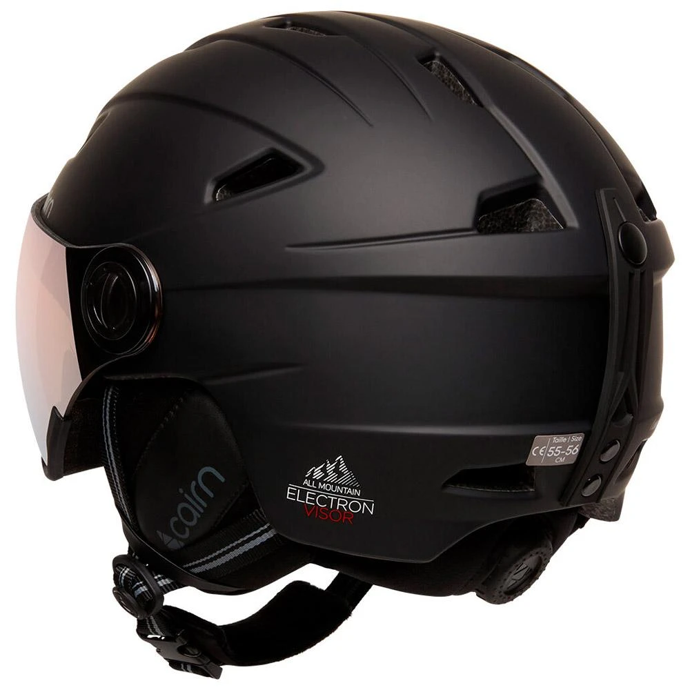 Le casque de ski à visière intégrée Electron Visor de chez Cairn est à la fois performant et accessible financièrement. Il dispose d’une construction In-Mold légère et efficace ainsi qu’une ventilation réglable pour aérer le casque selon vos envies. L’Electron Visor est doté d’une visière photochromique de catégorie 1 à 3 pour une excellente vision par tout temps. Cette visière assure également un champ de vision maximal tout en étant compatible avec le port des lunettes de vue. Concernant les autres fonctionnalités, on trouve une doublure polaire douce et chaude qui vous apporte beaucoup de confort ainsi qu’une molette de réglage pour un fit personnalisé.