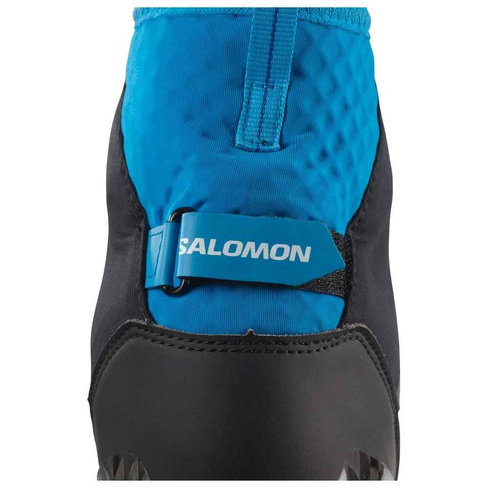 Si on souhaite apprécier cette chaussure à sa juste valeur, il faut déjà comprendre la philosophie de sa conception. Partant du principe que le fossé était trop important techniquement entre les gammes S/Race et RC Salomon a décidé d’ajouter une gamme intermédiaire dans laquelle elle mixerait les propriétés des unes et des autres. Cela a commencé par les skis de skating, puis les chaussures de skating, et désormais la gamme classique. Quand on voit le résultat et les lignes de la chaussure, il est difficile de ne pas s’apercevoir que le travail de développement de la marque française a porté ses fruits. Un très beau châssis à contreforts latéraux en carbone tressé vient stabiliser le talon et offrir un niveau de maintien en guidage exceptionnel. et que dire de la découpe du chausson, plus fin que sur les gammes inférieures, on serait même tentés de le trouver plus séduisant que celui de la S/Race. À un détail près ce serait comparable, sauf que dans sa vision Salomon a souhaité la rendre plus accessible, c’est pour cela qu’elle est munie d’un chausson Performance Fit 102mm plus large et confortable et d’une isolation à membrane ClimaSalomon plus protectrice de l’humidité et de l’air. La semelle Prolink Racing classic offre toute la souplesse nécessaire à un bon déroulé de pied et porte clairement le comportement de la chaussure vers la performance.