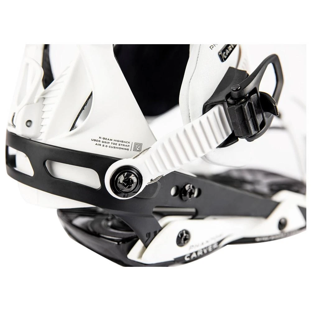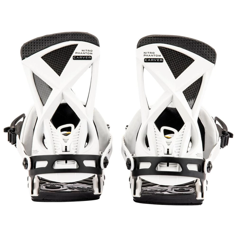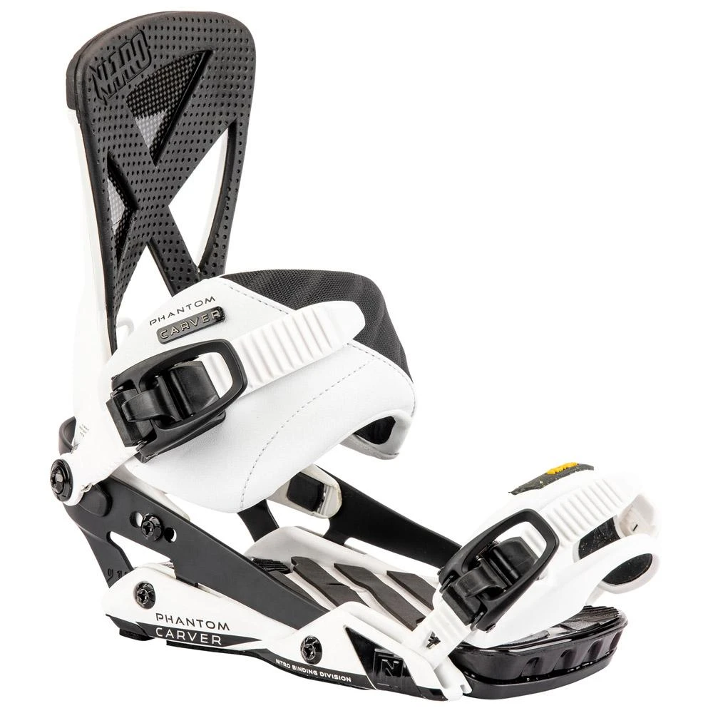 Version modifiée de la Phantom, la fixation de snowboard Nitro Phantom Carver part d’un modèle freestyle pour devenir une fixation beaucoup plus précise dans les courbes. Le spoiler est renforcé par du carbone et des modifications ont été apportées au strap cou-de-pied pour gagner en contrôle sur les appuis frontside. On perd donc en jouabilité pour gagner en performance, sans perdre en confort et en amorti qui sont haut de gamme. Spécifiquement développé pour les amateurs de carving, cette fixation fait partie de la section Carver Crue de chez Nitro.