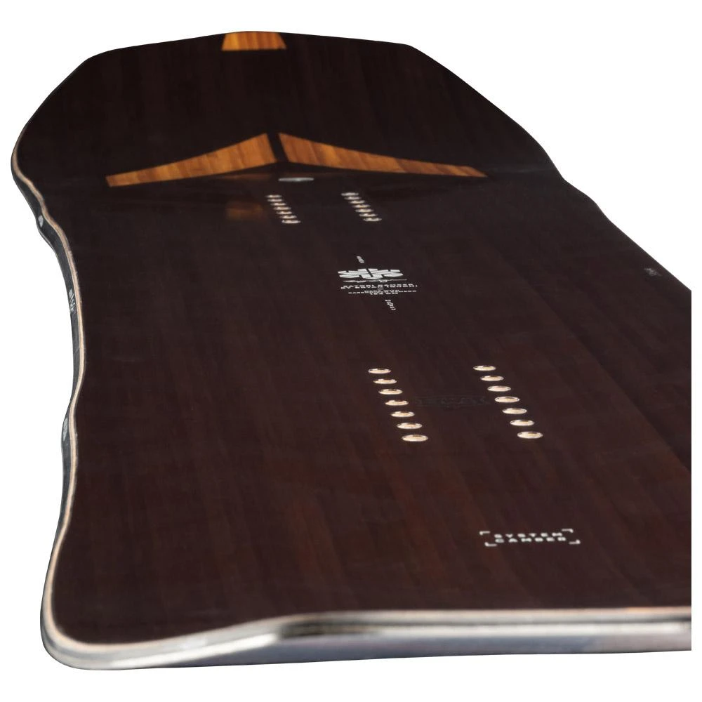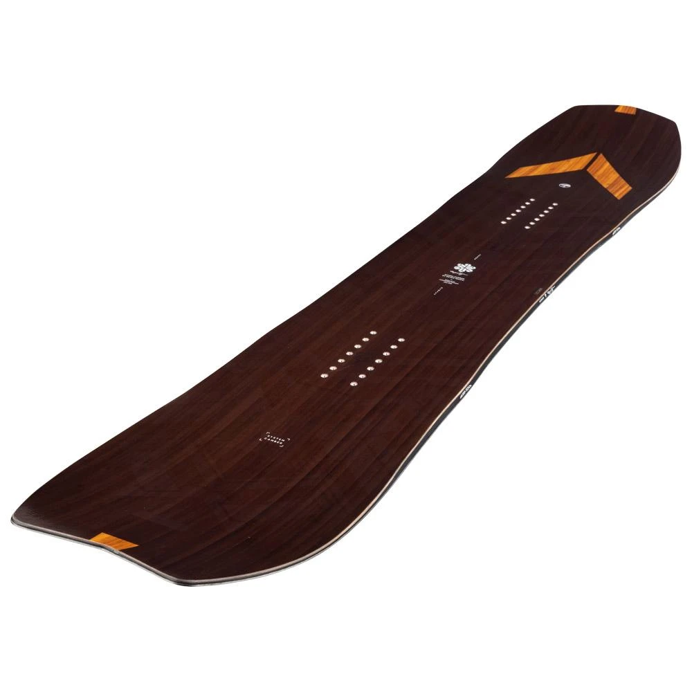 L’Arbor Satori Camber a été imaginée par le snowboardeur Bryan Iguchi. Elle se distingue par sa forme directionnelle, légèrement effilée du nose au tail, ainsi que par ses dimensions assez courtes et larges. Cela lui confère beaucoup de maniabilité et une déjauge naturelle dans la poudreuse. Elle est également pourvue d’un cambre classique bien marqué et de carres ondulées, le tout apportant une très bonne accroche sur neige dure. On voit donc qu’elle est performante sur tout type de neige mais qu’elle reste assez facile à manier, puisque son noyau en paulownia offre un flex bien équilibré entre puissance et confort de ride. Ainsi, c’est une board offrant beaucoup de feeling, accessible dès le niveau intermédiaire/confirmé et qui fera le bonheur d’un snowboardeur qui veut s’offrir de belles descentes sur tous les terrains, qui veut une bonne accroche sur le dur, mais qui ne veut pas non plus trop forcer sur les cuisses.