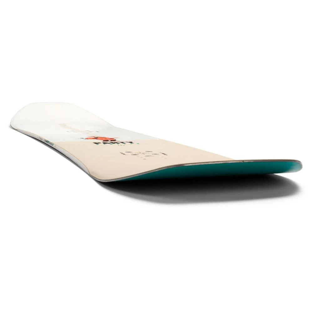 La K2 Party Platter Design est un snowboard polyvalent qui permet de tout faire, du freeride comme du freestyle. À l’aise dans la poudreuse, elle intègre un shape directionnel, un tail légèrement resserré par rapport au nose, ainsi qu’un rocker avant bien prononcé qui améliore la déjauge et accroit sa maniabilité. Le cambre classique, le flex équilibré et la position bien centrée des pieds sur la board permet d’utiliser la Party Platter Design pour assouvir vos pulsions de freestyle en passant sur piste et au snowpark. L’accroche est bonne, elle assure d’avoir de la relance en virage et profite d’un pop très tonique, grâce à la technologie de renfort Ollie Bar. Cela rend ce modèle parfait pour un usage all-mountain, afin de prendre la montagne pour son terrain de jeu, que ce soit pour slasher la peuf en faisant de belles courbes, aller graber avec style au park ou en prenant un kicker naturel pour expérimenter vos plus belles rotations !