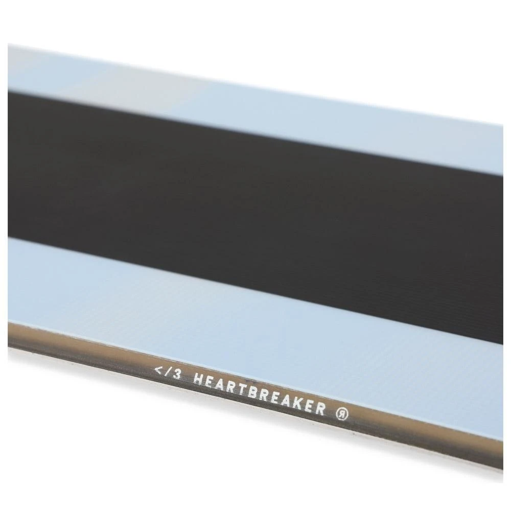 La Ride Heartbreaker est une twin-tip, c’est à dire qu’elle est symétrique du nose au tail, ce shape permet d’être aussi à l’aise dans un sens que dans l’autre afin de faire du switch et lancer des tricks de freestyle. En effet cette planche accessible et ludique est dotée d’un flex souple et tolérant la rendant joueuse. La présence de cambre classique entre les pieds procure de l’accroche afin d’être en confiance sur neige dure et bénéficier d’un bon comportement sur piste. Les zones de rocker au nose et tail renforcent la tolérance et permettent de glisser plus facilement là où la neige n’est pas damée, sur les bords de pistes par exemple. La Heartbreaker est une planche ludique qui permettra aux snowboardeuses débutantes d’apprendre en s’amusant et qui offre une belle dose de jouabilité pour les rideuses intermédiaires souhaitant une planche tolérante pour travailler leurs tricks en freestyle.
