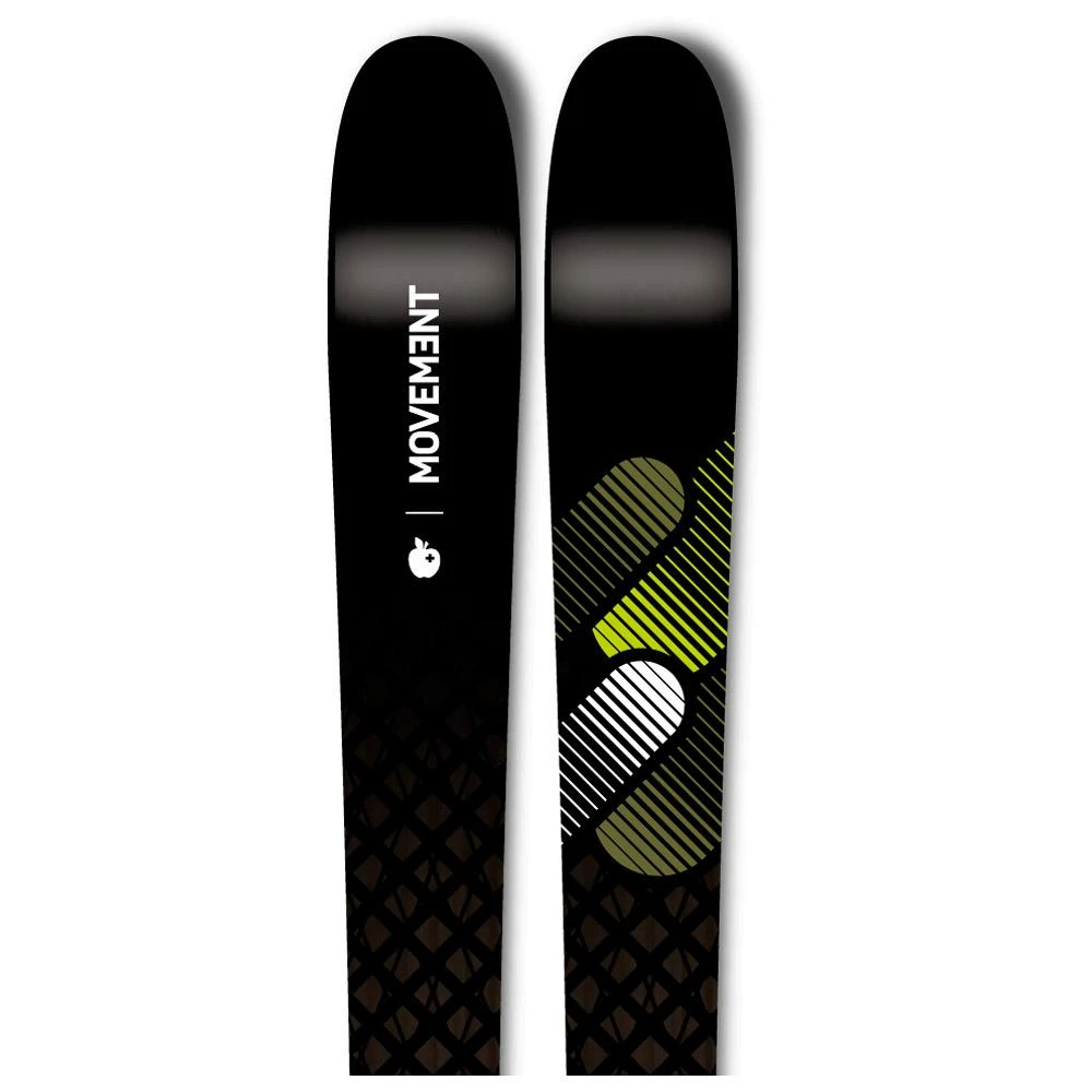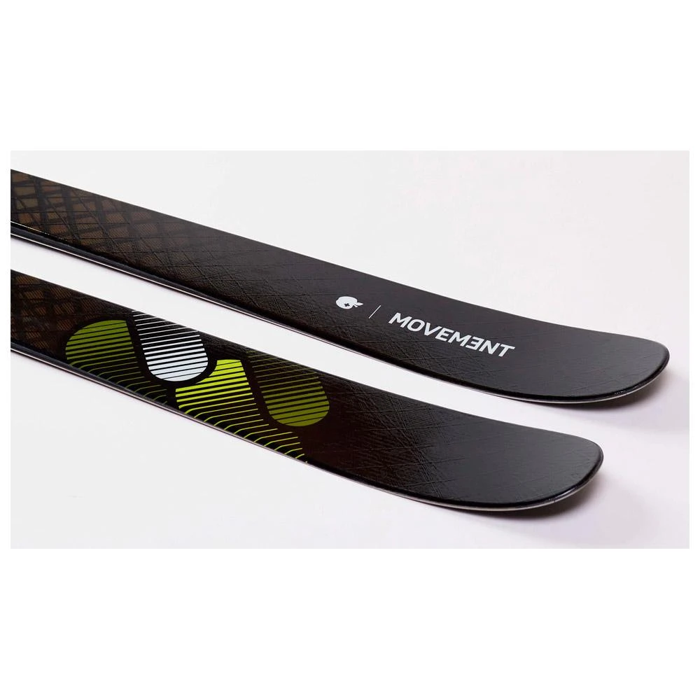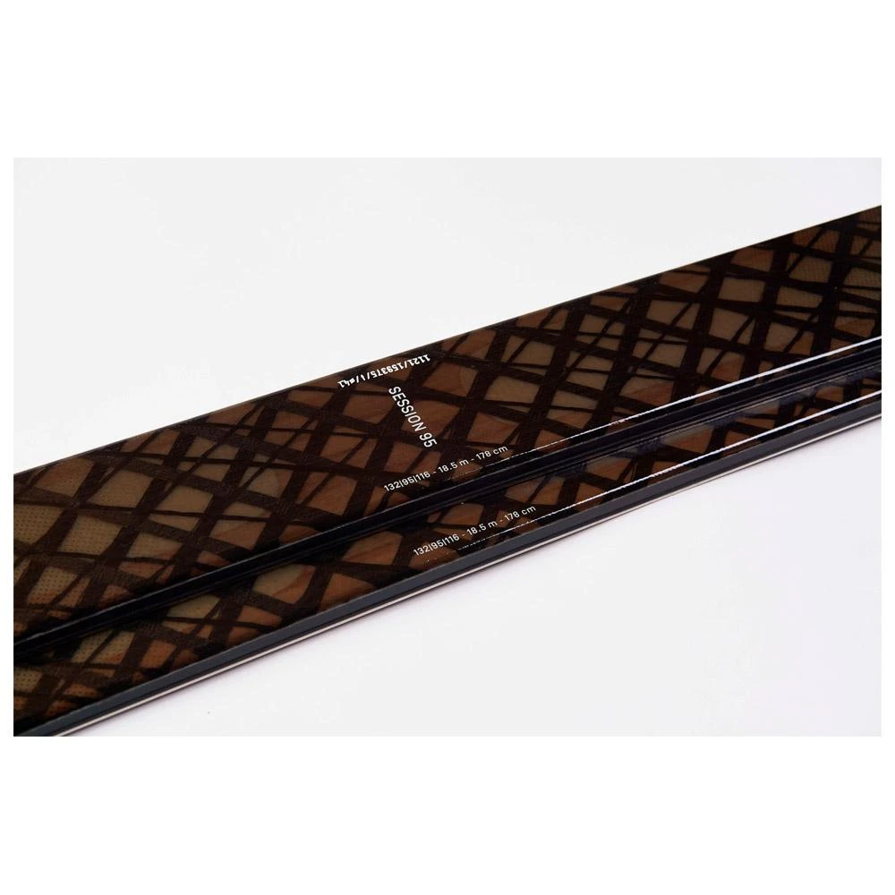Le ski de rando polyvalent Session 95 de chez Movement dispose d’une excellente largeur de patin de 95 mm qui lui permet de bien flotter dans la neige molle et de tracer de belles courbes sur la pow en pleine montagne. Ce modèle possède un poids contenu grâce au noyau en bois de paulownia et ses couches de carbone Carbon 5-Axis qui permettent de délivrer une belle skiabilité sur toutes les neiges. La double plaque de titanal que Movement a intégré dans le Session 95 renforce la stabilité du ski lorsque vous effectuez des virages appuyés en hors-piste, d’autant plus que la construction sandwich apporte elle aussi une bonne rigidité en torsion. Si vous vous intéressez au profil du ski, vous trouverez sous les pieds un cambre classique qui permet de bien accrocher sur les neiges dures. À l’avant, un rocker en spatule permet de déjauger sur les neiges molles et facilite aussi la mise en virage du ski. À l’arrière, le talon plat renforce l’accroche du ski et dynamise la relance, pour que vous puissiez enchaîner les virages sans perdre ni en vitesse, ni en enthousiasme.