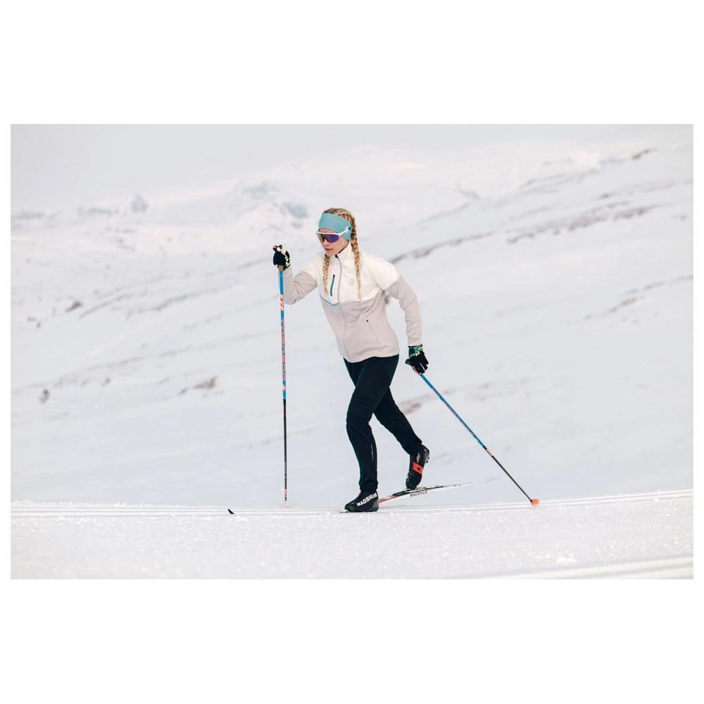La Bjorn Daehlie Jacket Kikut pour femme est une veste de ski de fond technique conçue pour vous accompagner sur vos sorties loisir en ski de fond. Très confortable, elle est coupe-vent grâce à sa conception Softshell 3 couches et vous tient au chaud. Elle vous garde également au sec avec sa membrane thermoplastique 10K/10K et son traitement déperlant durable Rudolf Bionic- Finish® ECO. Ce dernier est d’ailleurs développé pour amoindrir la perte de particules lors des lavages en machine. Ses manches articulées et les pans plus stretch dans le dos et à l’arrière des bras vous laisse toute la mobilité nécessaire à la pratique du ski de fond. Enfin, la veste est équipée de deux poches mains zippées qui permettent d’apporter avec soit quelques effets personnels et aussi de quoi manger pour éviter la fringale sur les pistes.